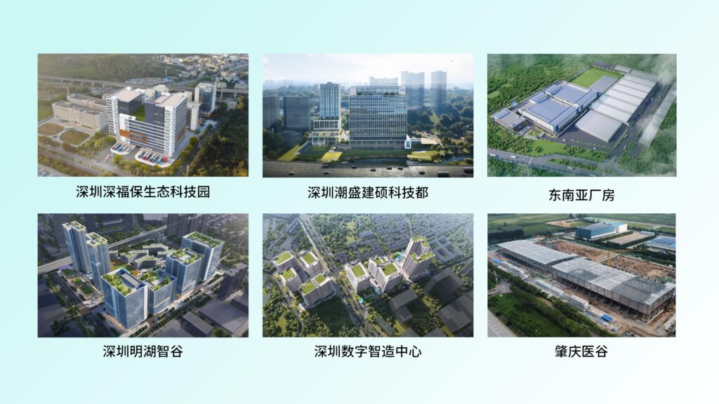 • 工业产业园:东南亚厂房、深圳深福保生态科技园、深圳潮盛建硕科技园、深圳明湖智谷、深圳数字智造中心、肇庆医谷(大型厂房快速建造、标准化与定制化结合),满足现代工业设施高效、高精度建造需求;